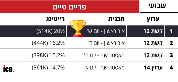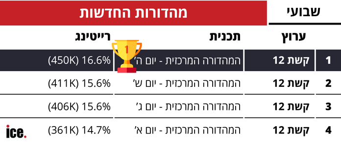 רייטינג שבועי: קשת מנצחת בכל הגזרות, זה השיא ששברה "אור ראשון"