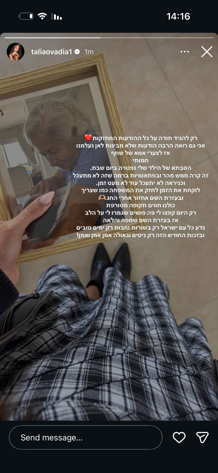 הסטורי של טליה עובדיה (צילום: אינסטגרם טליה עובדיה)