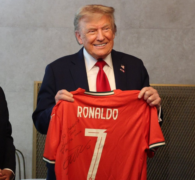 אתמול (ב') כדורגלן העל כריסטיאנו רונאלדו העביר באמצעות נשיא המועצה האירופית אנטוניו קוסטה, מתנה עבור הנשיא טראמפ. בעיצומה של פסגת G7 בקנדה, הנשיא טראמפ קיבל מהכוכב הפורטוגלי חולצת משחק חתומה על ידו, תחת הכיתוב: "לנשיא דונלד ג'יי טראמפ - משחקים למען השלום".