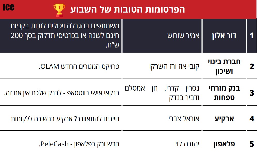 הקמפיין של דור אלון משך את תשומת ליבם של הצופים בעקבות השקת פעילות הגרלה נושאת פרסים חדשה. 10 הזוכים בפרס הראשון, ייהנו מקניות לשנה מתנה בסניפי אלונית/מיני סופר אלונית | דירוג 5 הפרסומות הטובות של השבוע