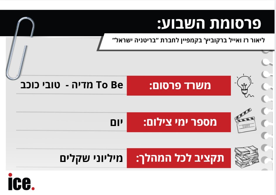 חברת "בריטניה ישראל", העוסקת בתחום ההשבחה, יזמות ושיווק של פרויקטים ברחבי הארץ, יצאה בקמפיין חדש ומסקרן בכיכובם של ליאור רז ואייל ברקוביץ'. בפרסומת, חברת הנדל"ן השיקה פרויקט מגורים חדש באזור חיפה ואף הציגה לראווה את הפנים החדשות של המותג הישראלי.