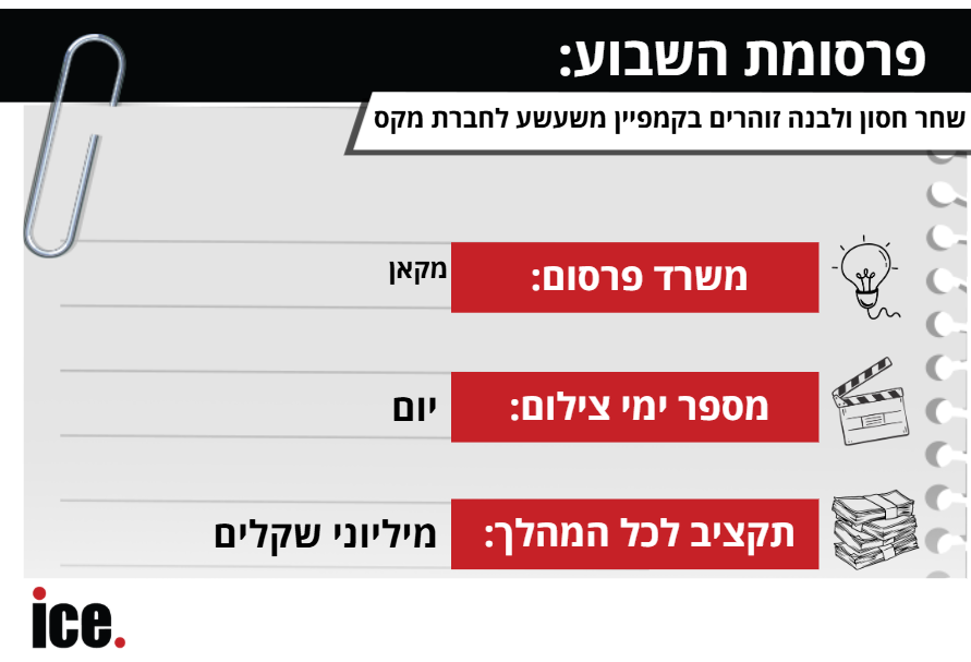 לצד הקמפיין של חברת מקס איט פיננסים, נחשפו הצופים ללא מעט פרסומות מושקעות ויצירתיות של חברות שהציגו לראווה שירות או מוצר חדש עבור קהל הלקוחות שלהן. מגישת הטלוויזיה מירי נבו נבחרה להוביל את הקמפיין החדש של נגה ומשרד האנרגיה והתשתיות, המתמקד במהפכת החשמל ששני הגופים מקדמים.