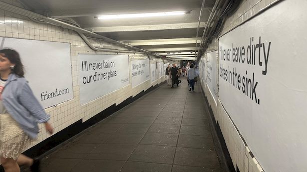כדי לקדם את Friend, רכש שיפמן שטחי פרסום עצומים בסאבווי: יותר מ־11 אלף מודעות בתוך הקרונות, אלף כרזות ברציפים ועוד מאות שלטי חוצות. חלק מרכזי מהקמפיין הוצב במעבר הארוך של השדרה הרביעית המערבית, אזור שאותו הגדיר היזם כנקודה שתייצר הכי הרבה תגובות.