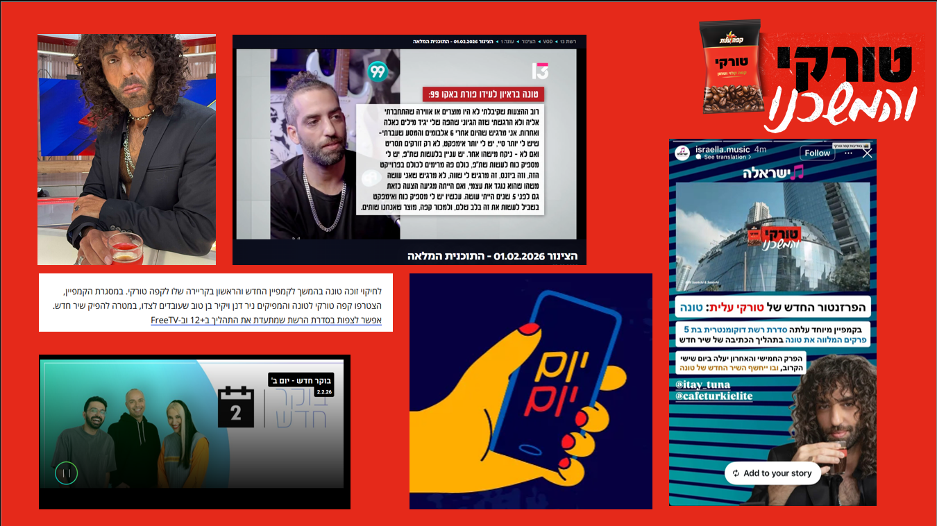 כך נולד החיבור עם האמן והיוצר טונה ונוצר עולם תוכן שלם שמפגיש בין קפה טורקי ותרבות עכשווית חזקה ורלבנטית. כבר במפגש הראשון עם איתי (טונה) נוצר חיבור אמיתי שהביא לרעיון לסדרה שממחישה בדרך ייחודית את הרעיון "טורקי והמשכנו" דרך סדרה שמלווה תהליך יצירה של שיר.