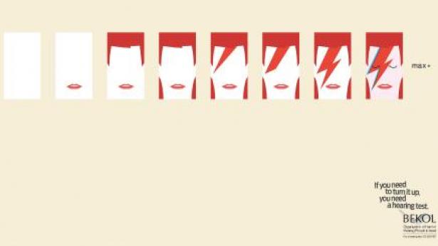 במודעות מוצג קונספט ויזואלי פשוט אך מתוחכם שבו סקאלת הווליום מוצגת באמצעות אייקונים מוסיקליים ידועים. תמונת האייקון המוסיקלי: הראפר סנופ דוג, מיילי סיירוס, סולן להקת KISS ודייויד בואי נחשפת בהדרגה משמאל לימין, כאשר משמאל לתמונה הראשונה ומימין לתמונה האחרונה מופיע הכיתוב MIN (מינימום) ו-MAX (מקסימום) כפי שנהוג למצוא על מכשירי הגברה.