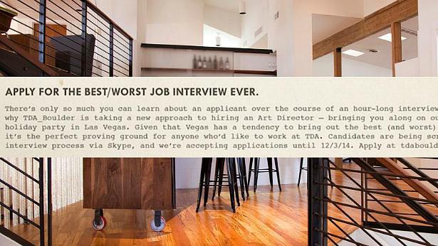 משרד הפרסום TDA_Boulder קורא לזה: \"ראיון העבודה הטוב/גרוע בעולם\". הגדרה מדויקת לדרך שבה הם מנסים לגייס למשרד ארט דיירקטור חדש.