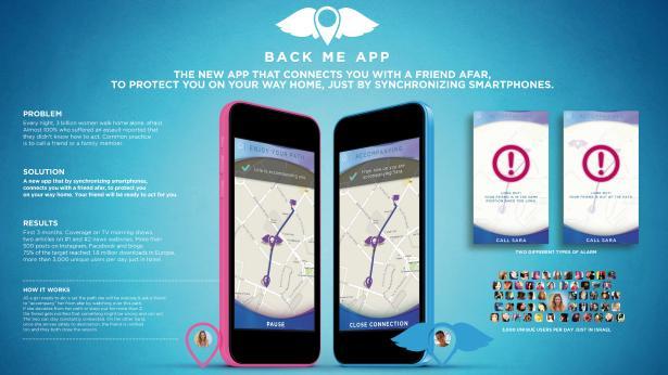 אפליקציית Back Me App הזוכה פותחה על ידי חברת הפרסום הסלולרי הישראלית במסגרת עבודה משותפת עם ליאו ברנט איטליה עבור מותג התחבושות ההיגייניות Always