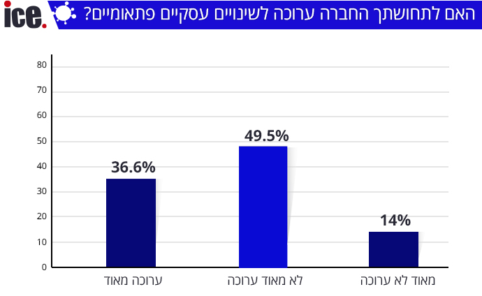 בשאלה האם החברה בה הנשאלים עובדים ערוכה לשינויים עסקיים פתאומיים, רק כשליש טענו כי היא ערוכה מאוד, ואולם מחצית טענו כי שינוי פתאומי תפס אותם לא מוכנים. 14% סברו כי החברה אינה ערוכה כלל למשבר.