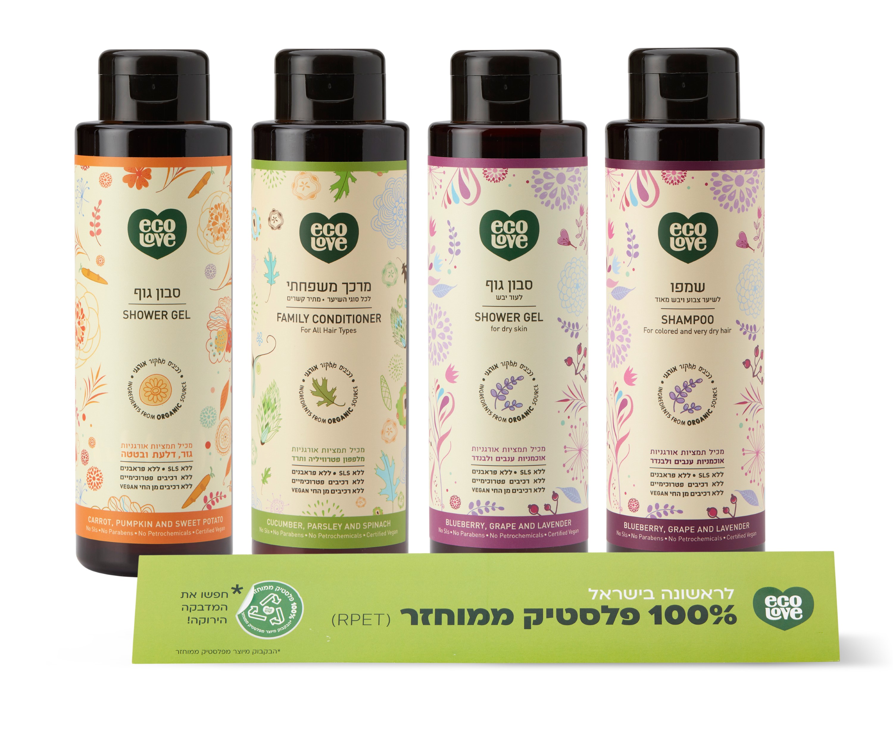 ecoLove הינו מותג טיפוח שיער, גוף ופנים, מתמציות ירקות ופירות אורגניים המאושרים ע"י ,ECOCERT חברת פיקוח המובילה בעולם לתקנים אורגניים. למותג מגוון מוצרים הכולל: מוצרי רחצה, טיפוח וקוסמטיקה מעושרים בתמציות: שמן זית אורגני המשמש נוגד חמצון, אלוורה אורגנית מרגיעה, חמאת שיאה ללחות ורכות, תמציות טבעיות מצמחים ועוד. כל המוצרים הינם ללא SLS, ללא פראבנים, ללא רכיבים פטרוכימיקלים, ללא רכיבים מן החי, מאושרים ע"י העמותה לטבעונות Vegan Friendly לא נוסו על בעליי חיים ומיוצרים כאן בישראל כדי לחזק את התעשייה והכלכלה המקומית.