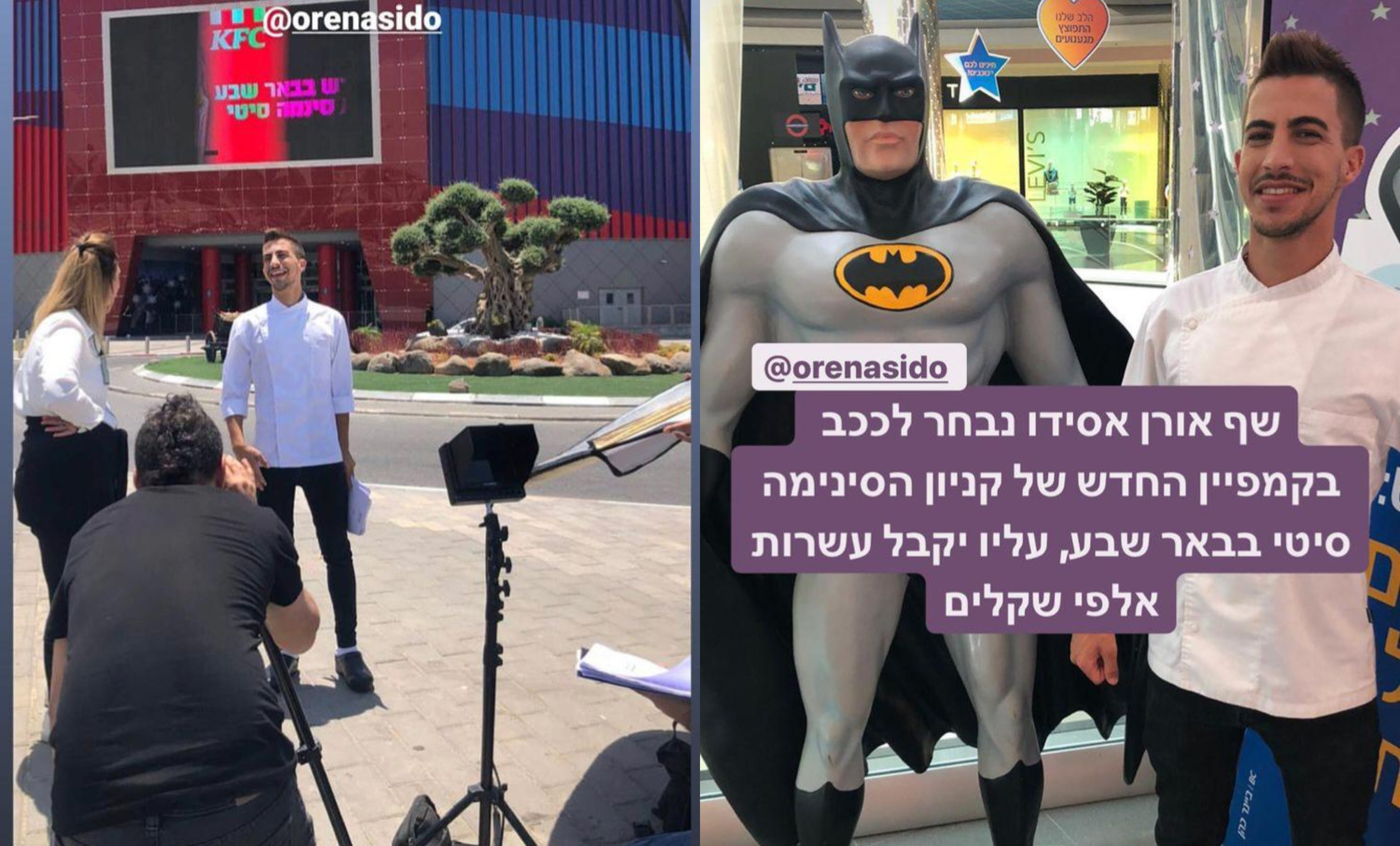 זוכה משחקי השף ויוצא האח הגדול האחרון, השף אורן אסידו, מככב בקמפיין חדש של הסינמה סיטי באר שבע. השף יקבל עבור שירותיו עשרות אלפי שקלים. היום בבוקר (רביעי) תיעד בסטורי שלו באינסטגרם את יום הצילומים שהחלו כבר לפני 6 בבוקר.