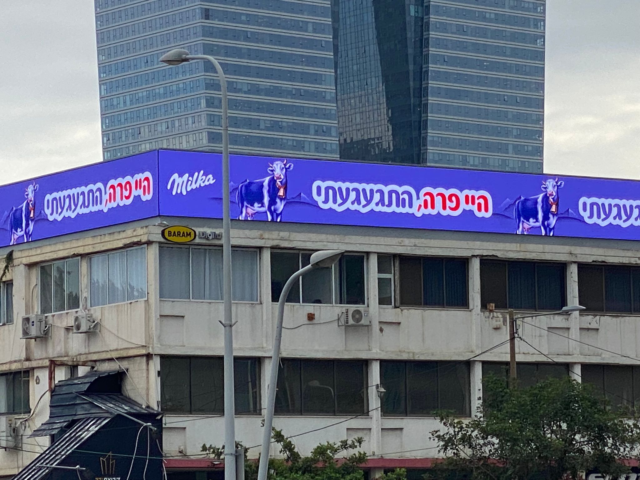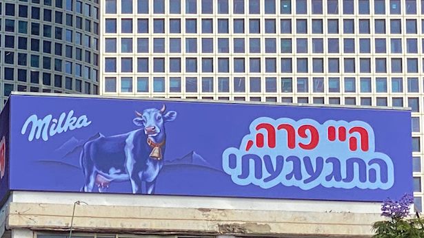 יצרנית שוקולד מילקה, חברת מונדליז, העלתה אמש שלט חוצות מיוחד, ובו הפרה הסגולה של מילקה מביעה את געגועיה לפרה האדומה, השוכנת בימים כתיקונם על המדפים ברשתות השיווק לצד הפרה הסגולה של מילקה.
