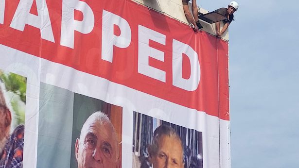שלט החטופים הגדול בעולם נתלה: "זו יכולה להיות סבתא שלך"