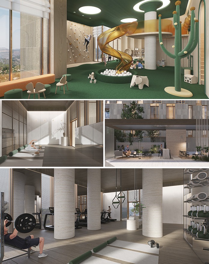 בפרויקט מציגה ICR פרשנות חדשה למונח "מגורים": Rooftop עם גזיבו ופינות ישיבה ייחודיות המאפשרות אירוח חוץ יוקרתי, מרפסת וולנס עם חדר כושר חיצוני, חדר כושר פנימי, סטודיו ליוגה ופילאטיס, ומועדון ילדים הם רק חלק משלל הפינוקים – המאפשרים טשטוש גבולות אולטימטיבי בין שגרת היומיום בבית לחופשה מתמשכת בריזורט. האזורים המשותפים בפרויקט (בעיצוב הפנים של האדריכלית דנה אוברזון) יכללו גם לאונג' דיירים, חלל עבודה שיתופי וחדר ישיבות.