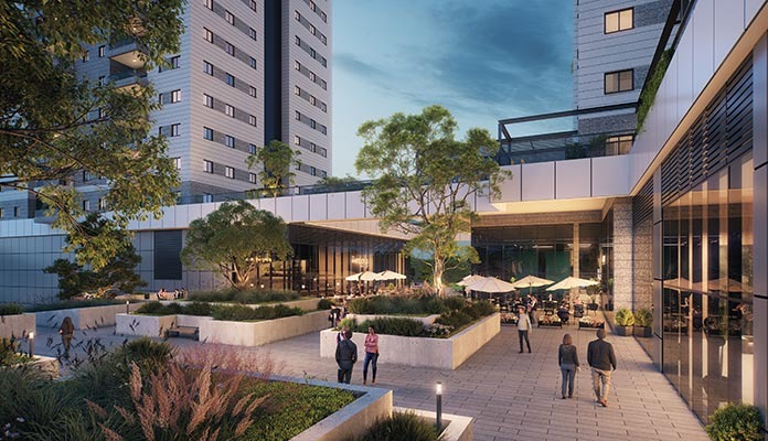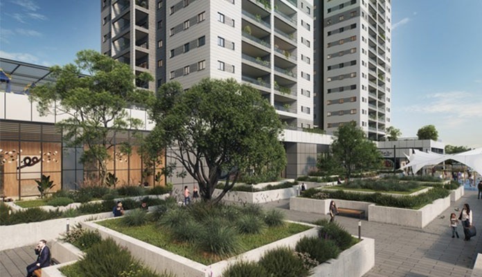 המתחם המסחרי בפרויקט אאורה סיטי פארק חדרה (הדמיה באדיבות אאורה)