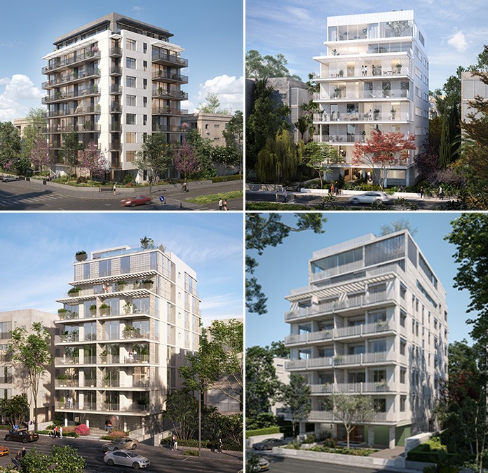 מקבץ מהפרויקטים המשתתפים בהטבה: (מימין עם כיוון השעון): אפשטיין 4, חברה חדשה 3, יהודה גור 7 ורמז 22 (הדמיות באדיבות אנשי העיר)