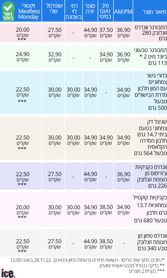 בדיקה שנערכה ביום שני השבוע בפרייסיז – אתר המשווה מחירים ברשתות המזון והפארם – מגלה כי "שני טבעוני" (Meatless Monday), של רשת ויקטורי זול יותר במבחר מוצרי מזון טבעוניים. יותר מכך: הפער במחיר של אותו המוצר בדיוק בין ויקטורי לרשת מקבילה, עשוי להגיע גם לסכומים של עשרות שקלים.