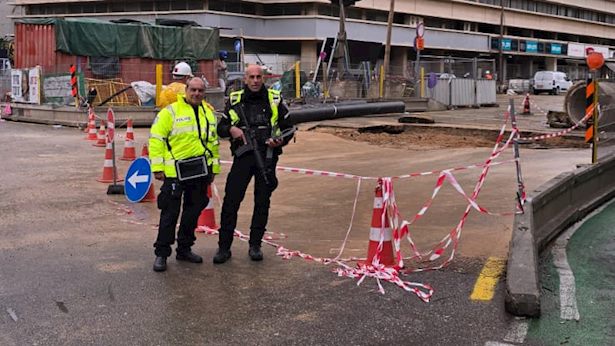 דרמה ענקית באחד האזורים המרכזיים בתל אביב: בעקבות בולען ענק שנפער באדמה בגלל עבודות הרכבת הקלה בעיר, רחוב אבן גבירול פינת קפלן נחסם לתנועה