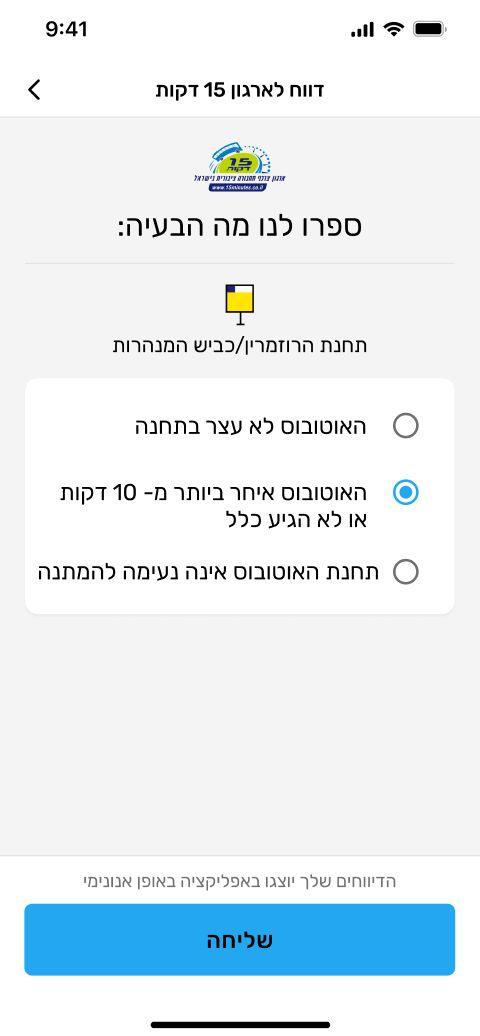 ארגון 15 דקות ואפליקציית הופאון משיקות פיצ'ר מהפכני שנועד לשנות את חווית הנסיעה בתחבורה הציבורית בישראל. הפיצ'ר BetterBus מאפשר למשתמשים לדווח על תקלה בזמן חיפוש המסלול ותיקוף הנסיעה