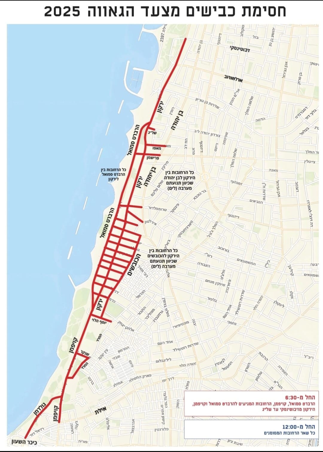רחובות נוספים שייסגרו לתנועה כוללים: בוגרשוב, טרומפלדור, נס ציונה, יצחק אלחנן, שנקר, סלמה, גולדמן, אילת, יונה הנביא, גאולה, הרב אהרונסון, זרובבל, נחמיה, מסוף כרמלית ויוסף לוי.