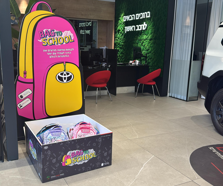 עבור מאות אלפי ילדים החיים מתחת לקו העוני בישראל, תחילת שנת הלימודים החדשה הינה אתגר לא פשוט. לקראת החזרה ללימודים, טויוטה ישראל יוצאת ביוזמה ארצית בשיתוף עמותת "תיק לכל תלמיד": BAG TO SCHOOL לטובת איסוף ילקוטים לילדים ממשפחות מועטות יכולת.
