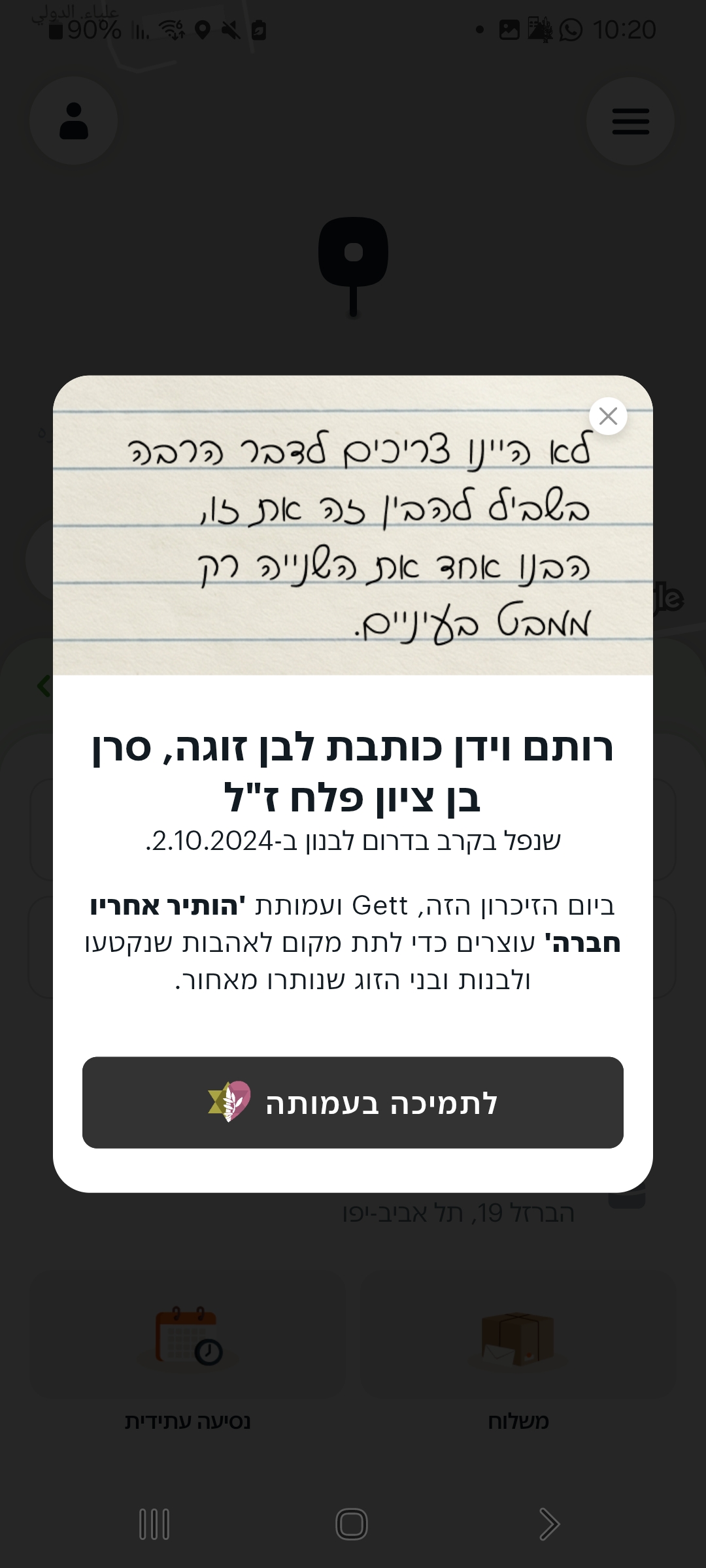 (צילום מסך אפליקציית GETT ועמותת הותיר אחריו חבר)