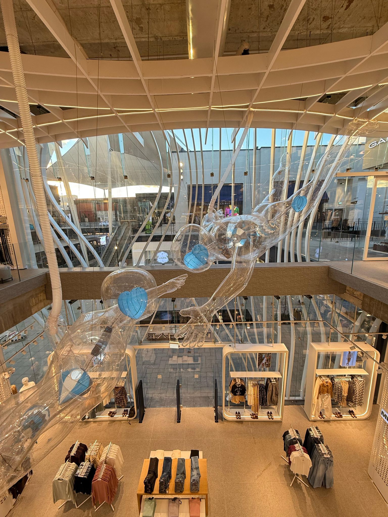 חזית החנות כוללת מסך תלת-מימד מתקדם, שישדר תכני אופנהם בתלת-מימד. בחנות תוכנן דרגנוע המחבר בין שתי הקומות, והיא כוללת חלל כפול המשמש רקע ליצירת אמנות ייחודית בשיתוף עם אומן מקומי, שמציג מיצג תלת מימדי.