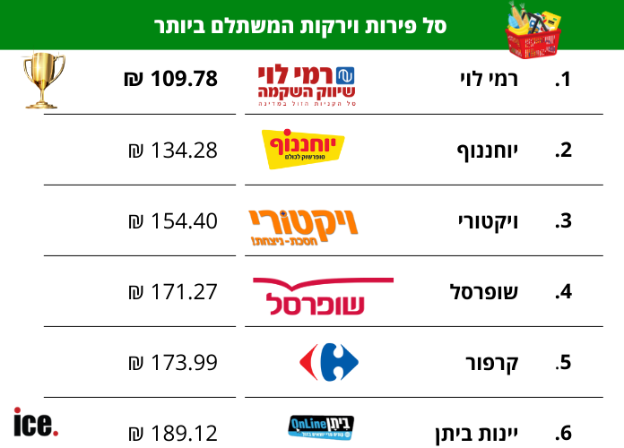עם השוואה נכונה, אפשר לחסוך לא מעט כסף. כמדי שבוע, בבדיקת ice מצאנו איזו רשת מזון מציעה את סל הפירות והירקות במחיר הזול ביותר באתרי האון ליין