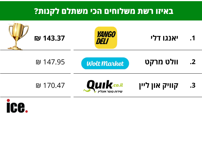 למרות הנוחות, גם ברשתות המשלוחים הללו ישנם פערים במוצרים ובמחירים של הסל הסופי. לכן, ice בדק ומצא איזו רשת מציעה את הסל המשתלם ביותר.