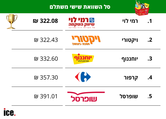 כמדי שבוע Ice בדק ומצא איזו רשת משתלמת יותר לארוחת שישי. השבוע גילינו מיהי רשת המזון שהוזילה משמעותית את הסל שלה