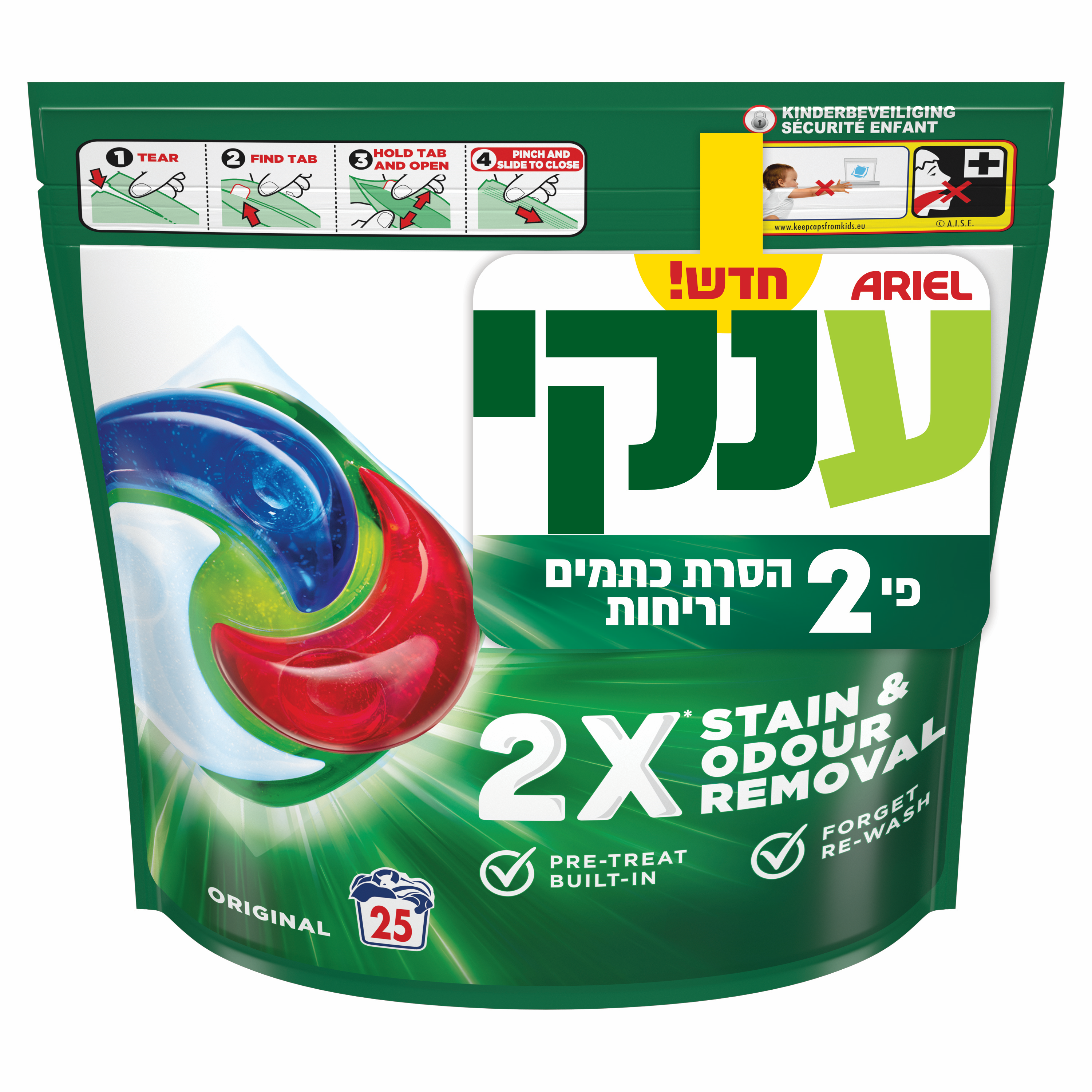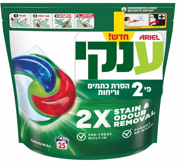 אריאל, מותג הכביסה משיקים קפסולות כביסה חדשות, קפסולות אריאל ענקי. קפסולה אחת של אריאל ענקי היא בעלת יכולות ניקוי יוצאות דופן עם פי 2 הסרת כתמים וריחות. כיום מכונות הכביסה נעות בין 7-9 ק"ג ומגיעות אף ל-12 ק"ג והדטרגנטים לכביסה הקיימים בשוק מתקשים לעמוד באתגר. דבר זה מתבטא בכך שמעל 75% מהצרכנים מעידים כי הם משתמשים במסירי כתמים ותוספים שונים, הקפסולה משנה את ההרגלים הללו.