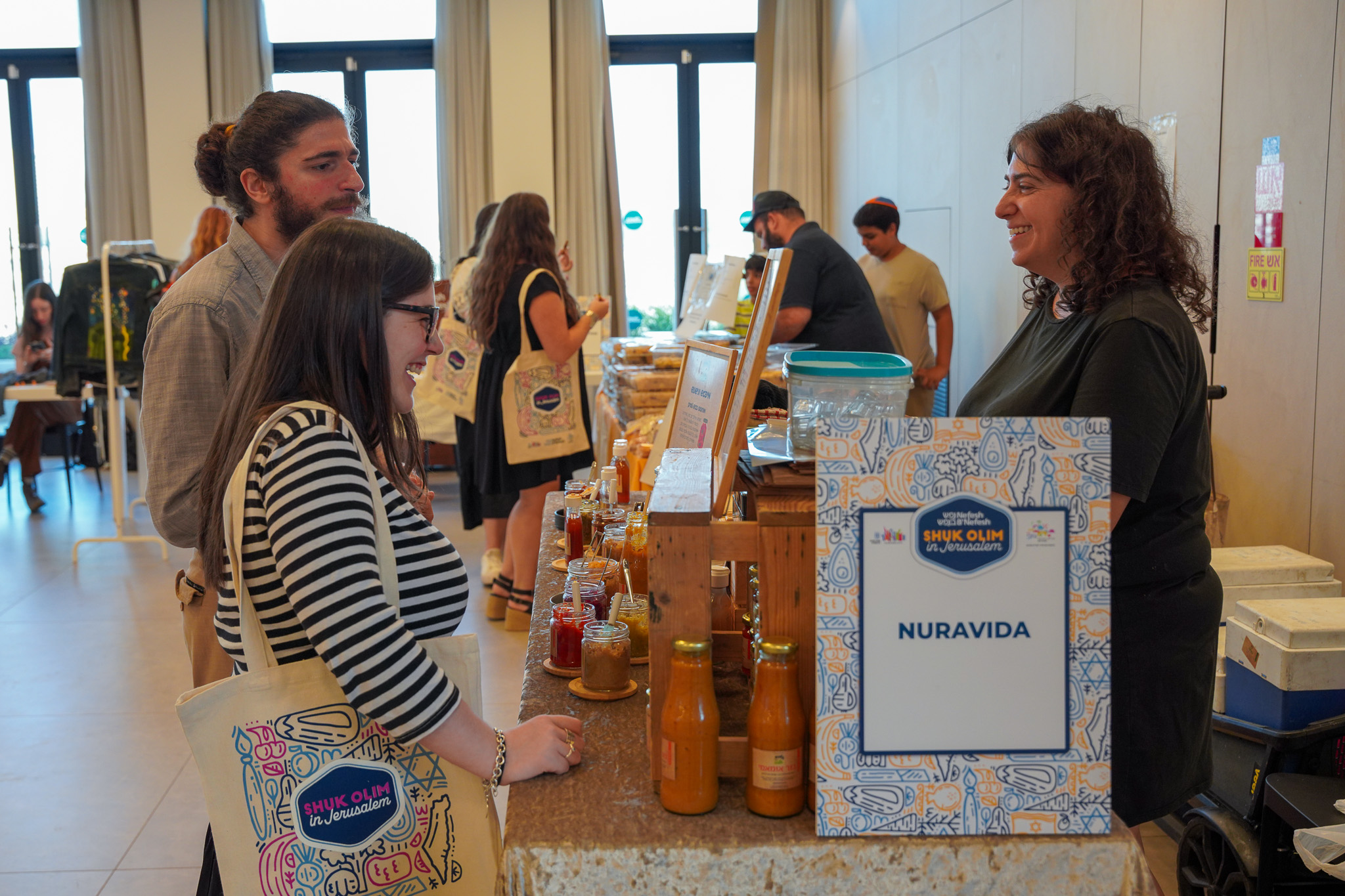 דוכן ממרחים ורטבים של Nuravida בשוק עולים, (צילום: נפש בנפש)