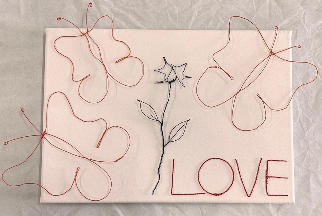 "כשהזמינו אותי ליצור יחד עם קובי סיבוני מיד ידעתי שארצה לפסל פרפרים מחוטי המתכת.פרפרים מסמלי עבורי קודם כל את אריאל המתוק ויחד איתו את שירי וכפיר האהובים פרפרים מסמלים גם חופש, אוויר, אור שמש. הם מסמלים עצמאות. החופש התבטא עבורי גם ביכולת ליצור שוב, לעבוד עם הידיים כמו שעשיתי לפני שהכל קרה.