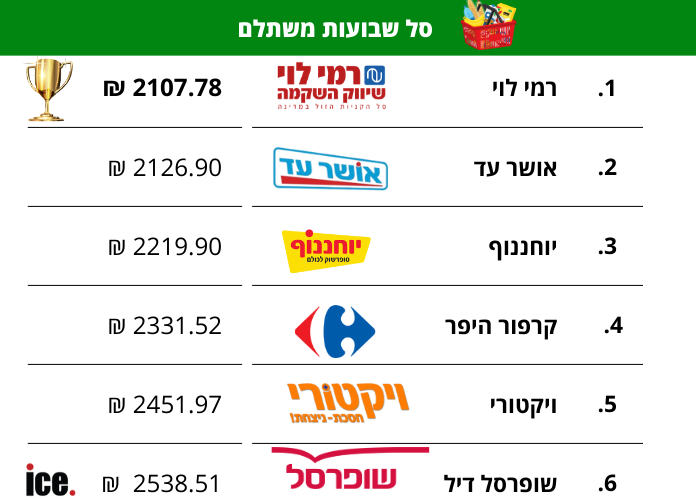 על פי הסקר, הסל הזול ביותר יצא ברשת רמי לוי עם סל של 2,107.78 שקל לעומת הסל היקר ביותר ברשת שופרסל דיל עם סל של 2,538.51 שקל. פער של 430 שקלים בין הסל הזול ליקר, שהם למעלה מ-20% הבדל. מדובר בפער שלא ניתן להצדיק – בטח לא בתקופה שבה יוקר המחיה ממשיך להעיק על הציבור.