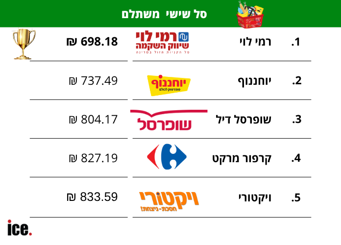 מהנתונים עולה כי הסל הזול ביותר נמצא ברשת רמי לוי, שם המחיר הכולל עמד על 698.18 ש"ח. לעומת זאת, הסל היקר ביותר נרשם ברשת ויקטורי, בה המחיר טיפס ל-833.59 ש"ח. מדובר בפער של 135.41 ש"ח בין שתי הרשתות – פער של כ-19.4% בין הסל הזול ליקר ביותר.