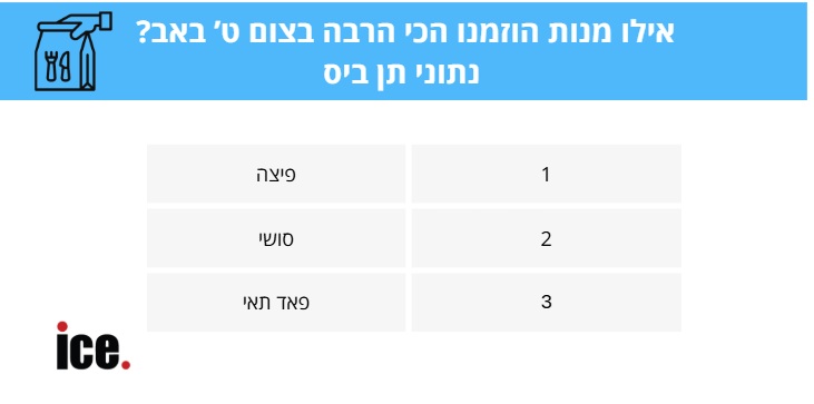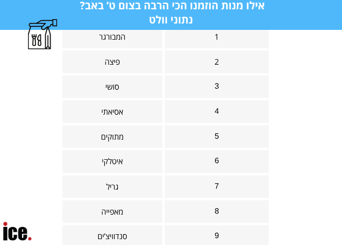 אמש נגמר צום ט' באב וישראלים רבים הזמינו מנות רבות ומגוונות. בדקנו איזה מנה הוזמנה הכי רבה אמש בפתיחת הצום