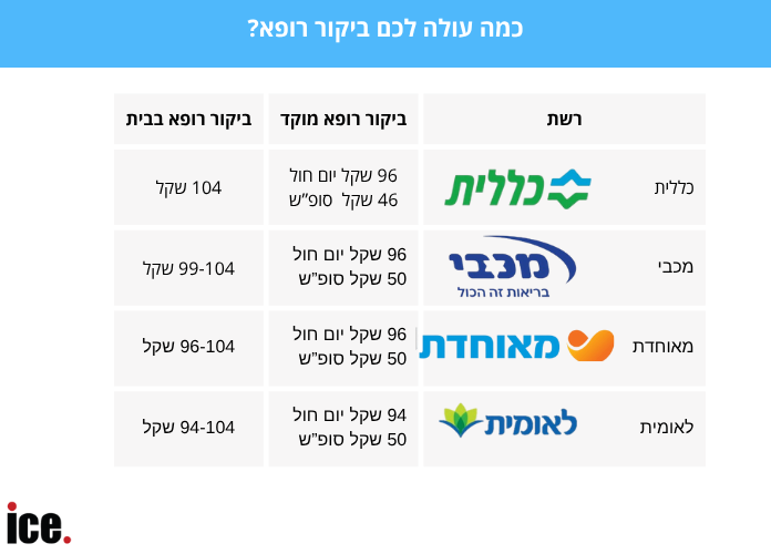 העלויות בין המרפאות די דומות אחת לשנייה ומציעות מחירים של כ-50 שקלים לביקור במוקד וכ-100 שקלים בממוצע לביקור רופא עד הבית. אך מבדיקה שערכנו כן תוכלו להוזיל את העלויות הללו במגוון דרכים.