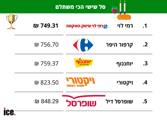 על פי הבדיקה, הסל הזול ביותר נמצא ברשת רמי לוי, שם עלות סל המוצרים לשבת הסתכמה ב-749.31 שקלים. לעומת זאת, ברשת שופרסל דיל אותו סל עלה 848.48 שקלים. מדובר בפער של 99.17 שקלים בין הרשת הזולה ליקרה. מבחינה יחסית, הפער עומד על כ-13%.