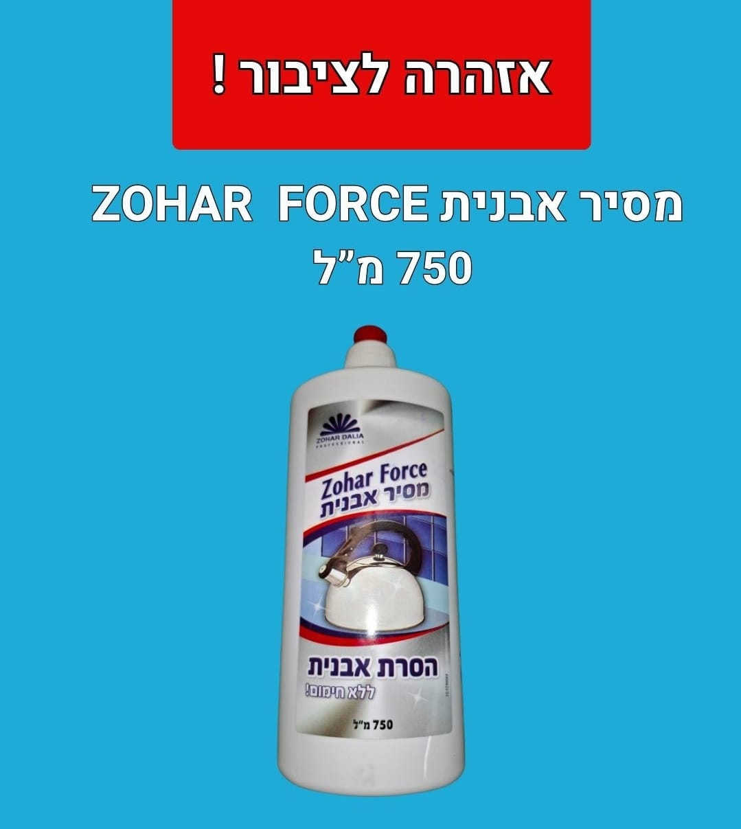 בהודעה שפרסם הממונה על התקינה במשרד, נקרא הציבור להפסיק לאלתר את השימוש במסיר האבנית ZOGAR FORCE של חברת זהר דליה פרופשיונל שותפות מוגבלת, ולבצע החזרה מסודרת של המוצר.