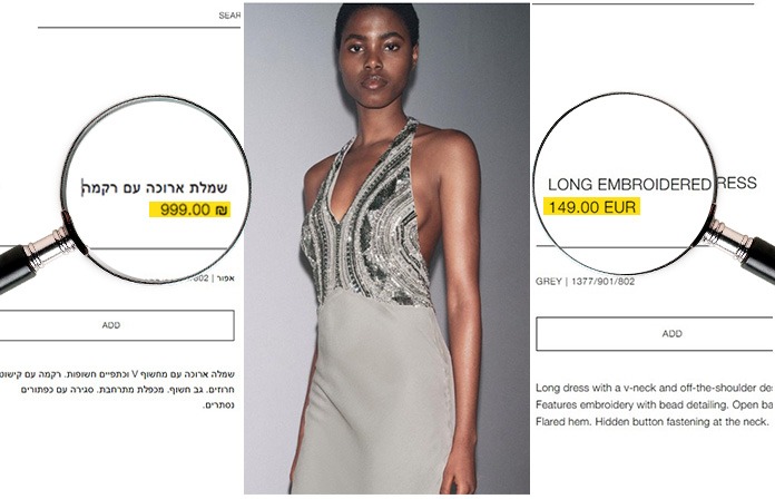כך למשל, שמלה ארוכה עם רקמה נמכרת בישראל ב־999 שקלים, בעוד שבספרד מחירה עומד על 159 יורו, שהם כ־508 שקלים. מדובר בפער של כמעט 100%.