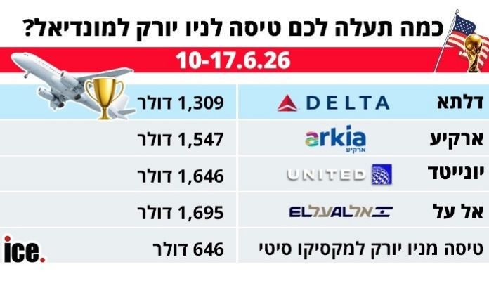 בשורה התחתונה, מדובר בהוצאה לא קטנה למי שמתכנן לטוס למונדיאל. יש לקחת בחשבון שהעלות הכוללת עשויה להתקרב ל־20,000 שקלים לאדם.