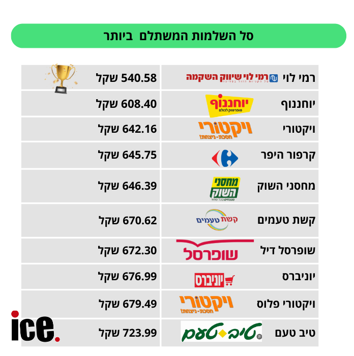כדי לבדוק היכן הכי משתלם לבצע את הקניות האלו, ערכנו השוואת מחירים בין רשתות השיווק המובילות בישראל, באמצעות אתר פרייסז, בכדי לבדוק איפה הסל הזול ביותר. הסל שבדקנו כלל מוצרים נפוצים לבית הישראלי, כאלה שנמצאים כמעט בכל בית ירקות טריים, מוצרי חלב, לחמים, בשרים, מוצרי ניקיון ועוד.