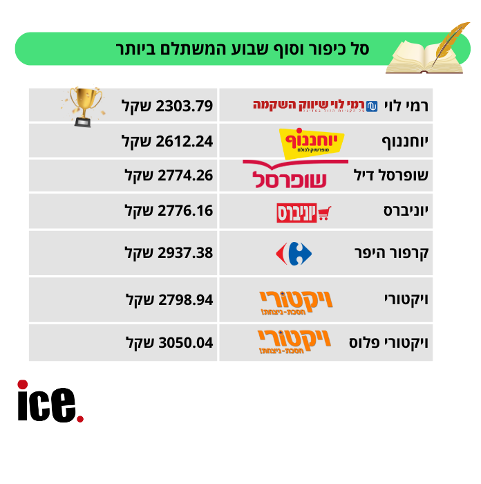 כדי לבדוק איפה הכי משתלם לקנות את כל מה שצריך, פנינו לאתר פרייסז ובנינו סל קניות שמתאים גם לכיפור וגם לשישי שבת שאחריו. מדובר בסל שכולל פריטים לארוחה המפסקת, לשבירת הצום ולשתי ארוחות שבת משפחתיות. בדקנו את המחירים ברשתות הגדולות וגילינו פערים משמעותיים מאוד. את הסל הזול ביותר מצאנו ברשת רמי לוי עם מחיר של 2303.79 שקל. את הסל היקר ביותר מצאנו ברשת ויקטורי פלוס שם המחיר עמד על 3050.04 שקל מדובר בפער של 746 שקל שהם כ-32% יותר עבור אותם מוצרים.