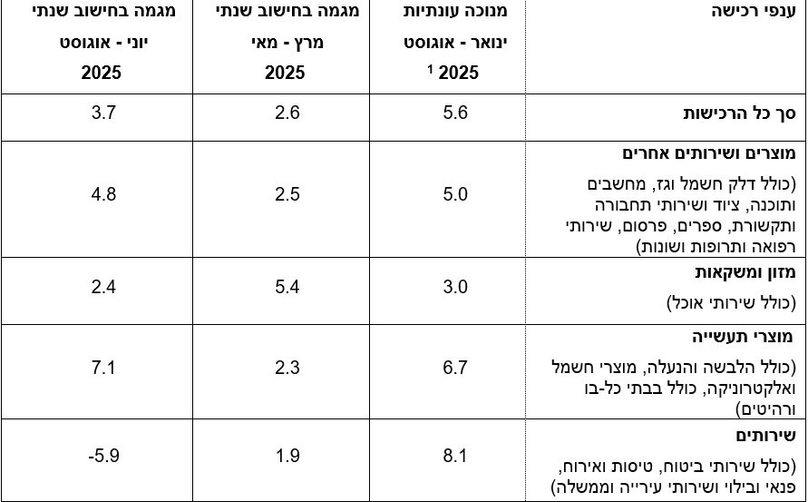 הלשכה המרכזית לסטטיסטיקה מפרסמת היום את נתוני הרכישות בכרטיסי אשראי לחודש יוני עד אוגוסט 2025 וחושפת נתונים מעניינים