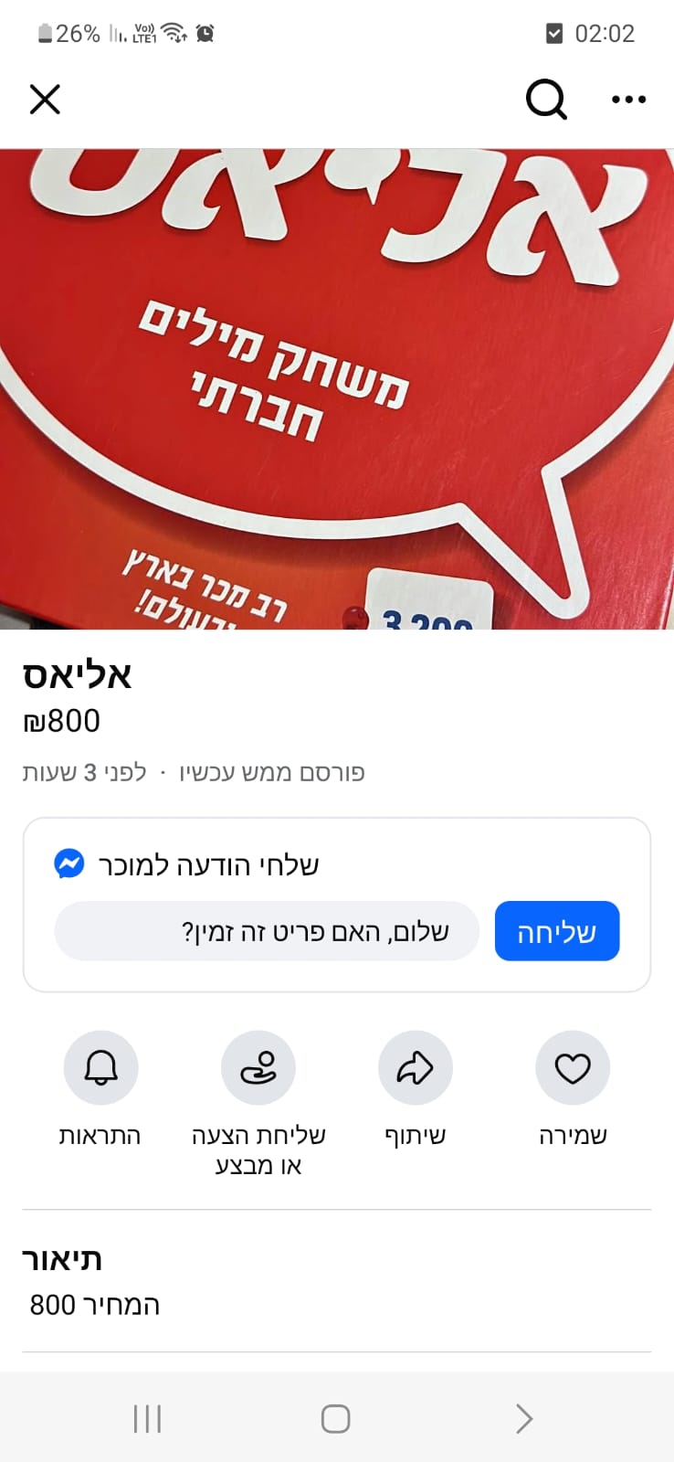 השנה, משחק אחד הצליח להתבלט מעל כולם ולהפוך ללהיט חסר תקדים דווקא בתקופה הזו. משחק הקופסה הוותיק "אליאס", שנמכר בדרך כלל במחיר של בין 99 שקלים ל־150 שקלים, הפך למוצר נדיר ומבוקש, עד לרמה שבה כמעט ולא ניתן למצוא אותו בחנויות. המחסור הביא לגל רכישות בקבוצות פייסבוק ואתרי יד שנייה, שם מוצע המשחק במחירים מפתיעים, שמתחילים ב־500 שקלים ומגיעים גם ל־800 שקלים לעותק אחד בלבד.