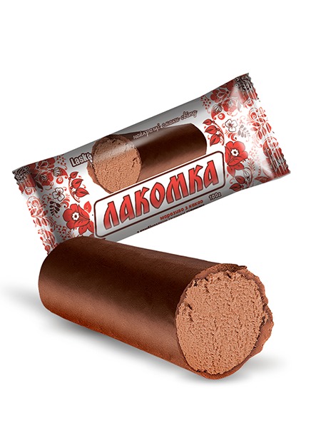 גלידה חלבית בשומן צמחי בטעם שוקולד בציפוי צימקאו (LAKOMKA)