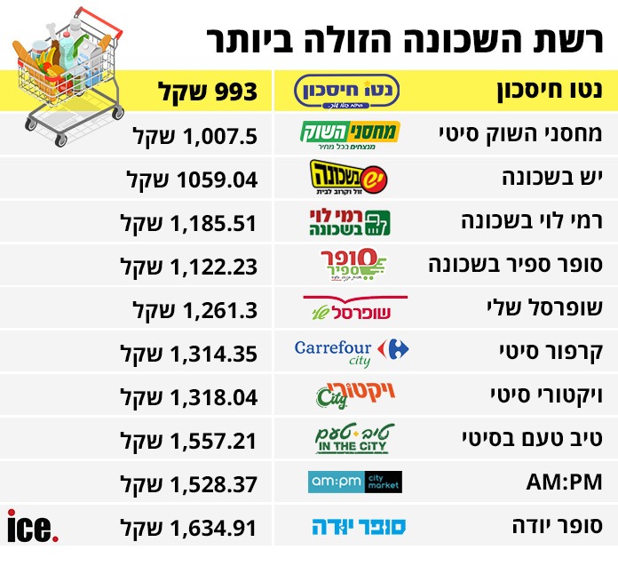 מהבדיקה עולה כי הרשת הזולה ביותר היא נטו חיסכון בשכונה, עם סל קניות שעומד על 993.58 שקל. לעומת זאת, הרשת היקרה ביותר היא סופר יודה, עם סל קניות שעולה 1634.41 שקל. הפער בין הסל הזול לסל היקר מגיע ל־640.83 שקל, שהם כ־64.5 אחוזים יותר. מדובר בהבדל ניכר שממחיש עד כמה בחירה מושכלת של סופר שכונתי יכולה לחסוך לא מעט כסף לאורך זמן.