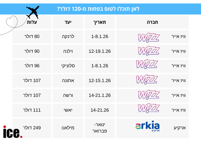 טיסה עד 60 דולר: לאיזה יעדים תוכלו לטוס?