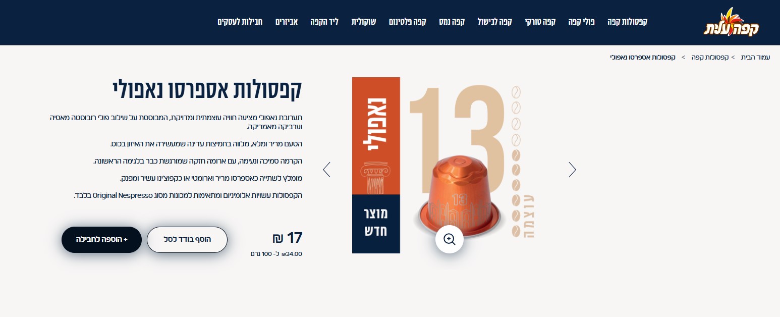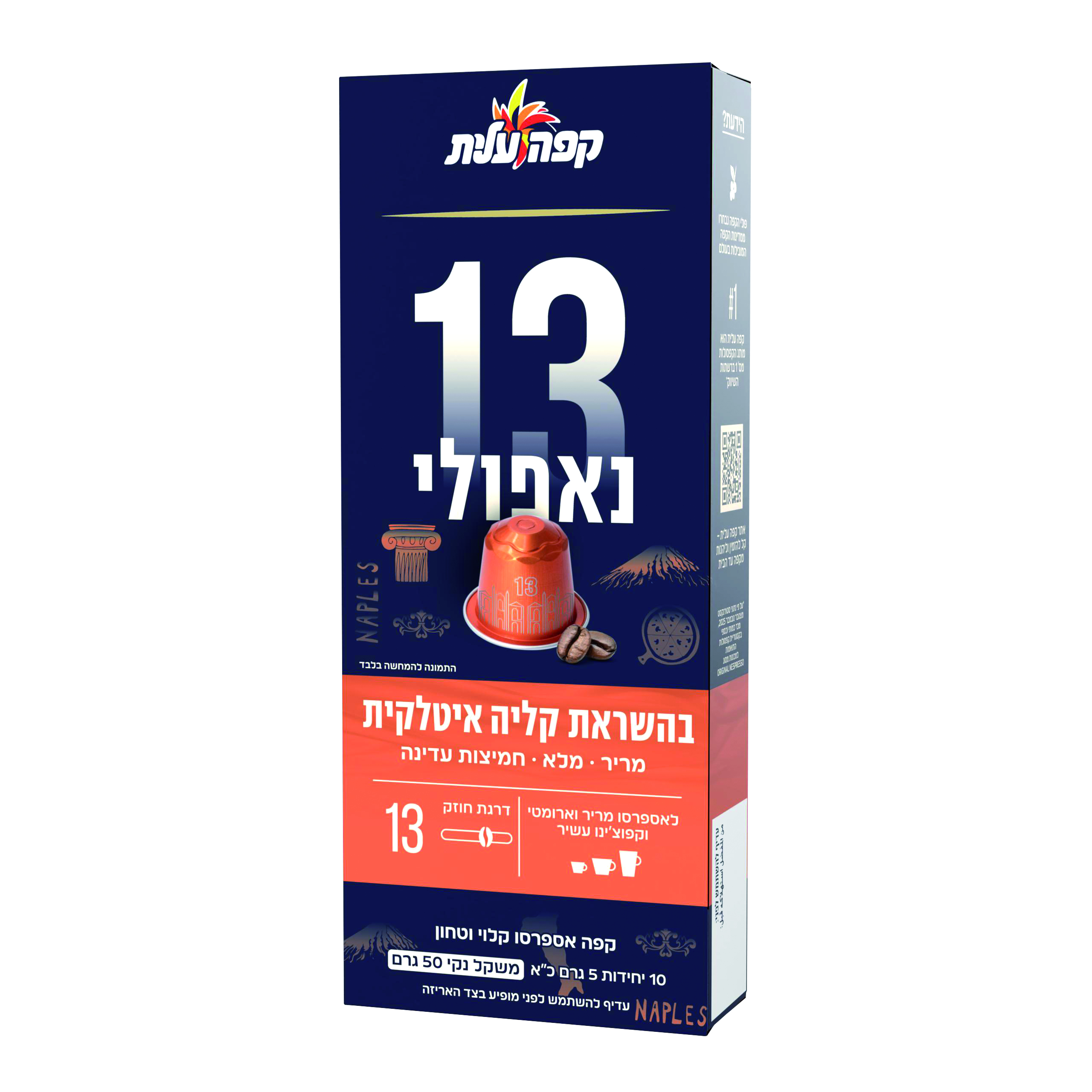 קפה עלית של שטראוס בבשורה לחובבי הקפה: המותג הישראלי משיק את קפסולות נאפולי בדרגת חוזק 13 - תערובת אספרסו עוצמתית בהשראת קליה איטלקית, המיועדת לחובבי הטעמים המרירים והארומטיים.