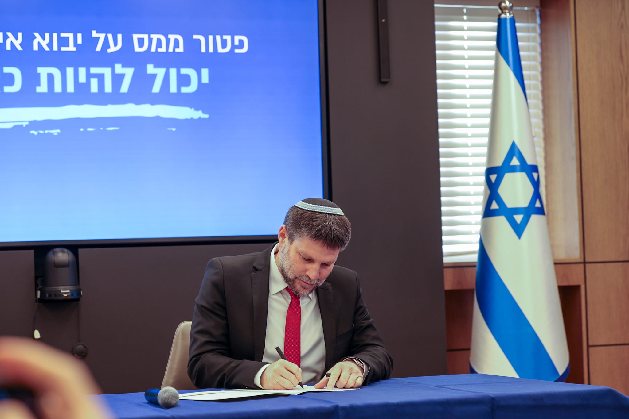 שר האוצר בצלאל סמוטריץ' חותם על הצו. קרדיט: יח"צ