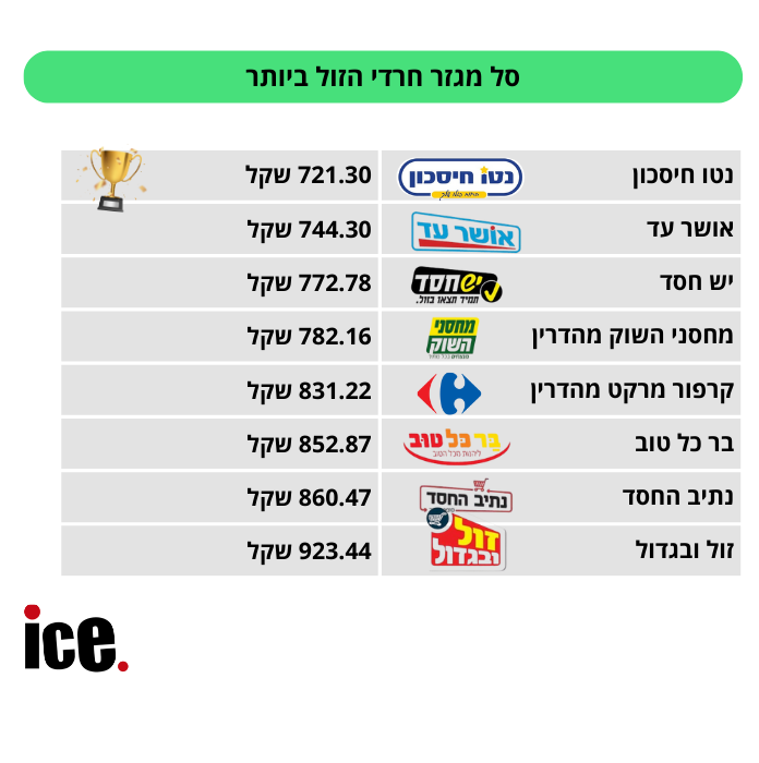 כמדי שבוע אנו בודקים ומשווים איפה הסלים והרשת הזולה ביותר. בבדיקה השבועית בדקנו איפה הסל הזול ביותר במגזר החרדי שמזמן הפך לנחלת הכלל. התוצאות לפניכם